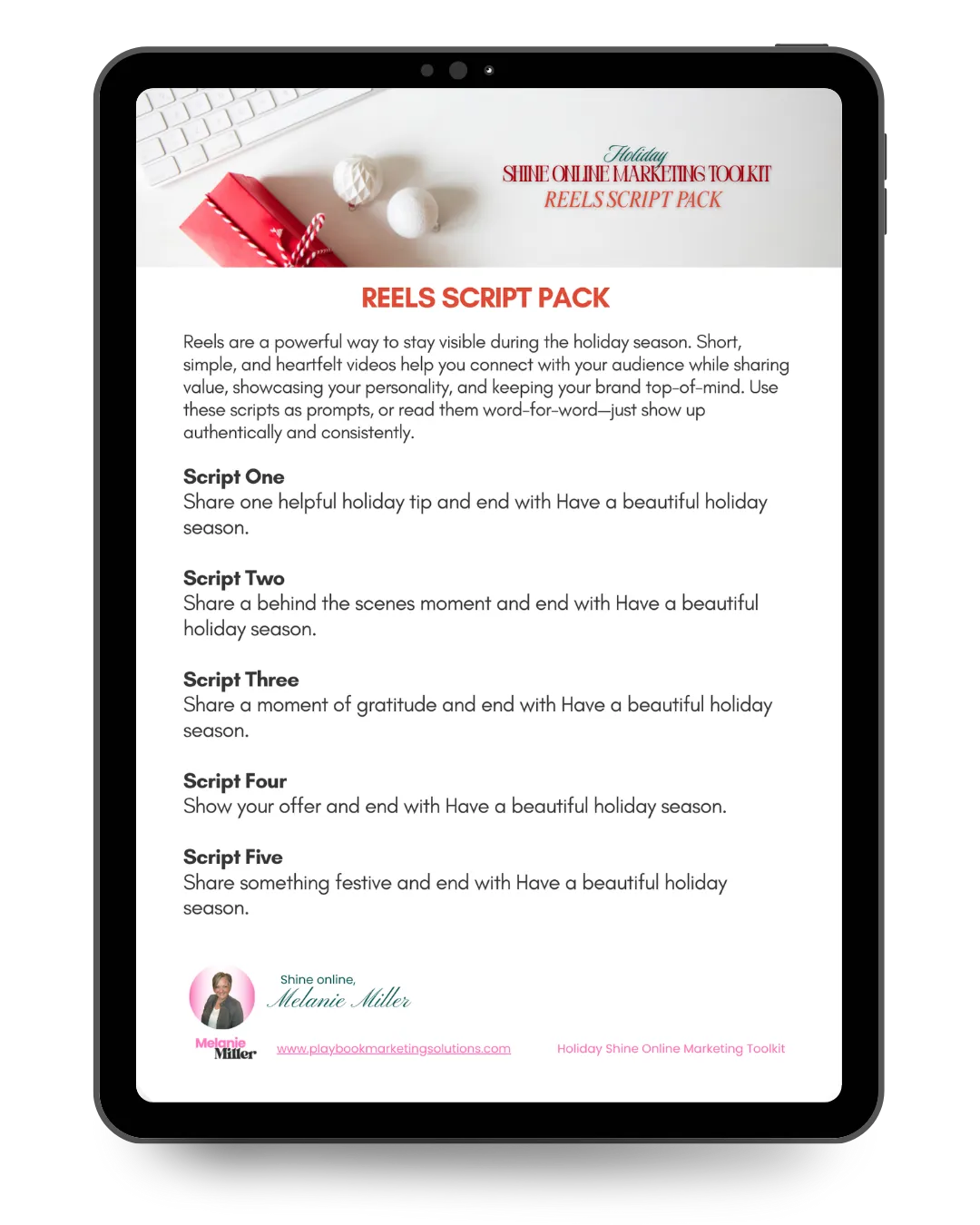 Whether you're sharing a tip, a moment of gratitude, or your holiday offer, these scripts help you show up confidently and authentically. No overthinking, no long filming days.